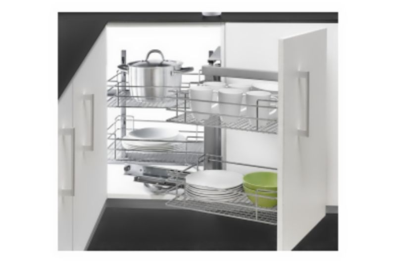 Slepý roh s tlumeným dovřením - Pravý, drátěné koše, 864x505x530 mm, chrom původní cena 4442+DPH